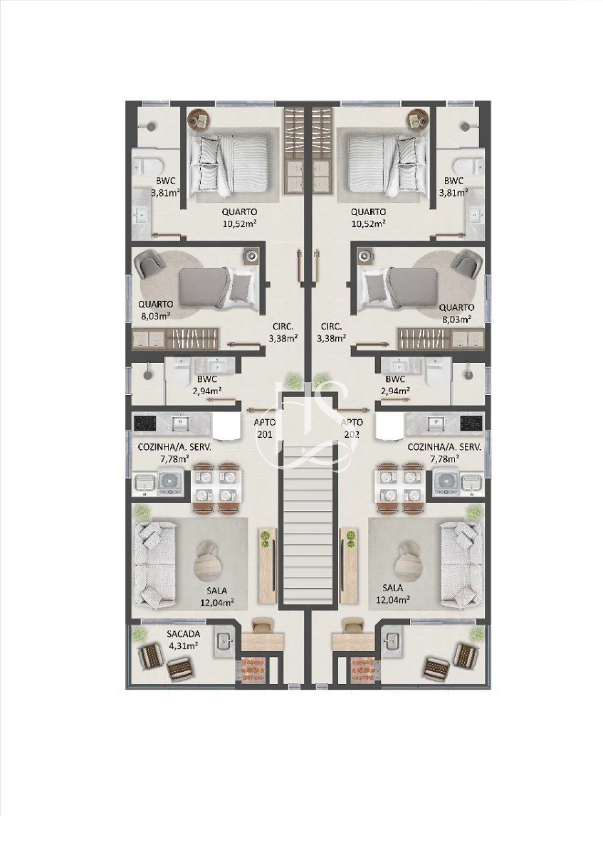 Área Íntima: 2 quartos, sendo 1 suíte confortável + banheiro social.