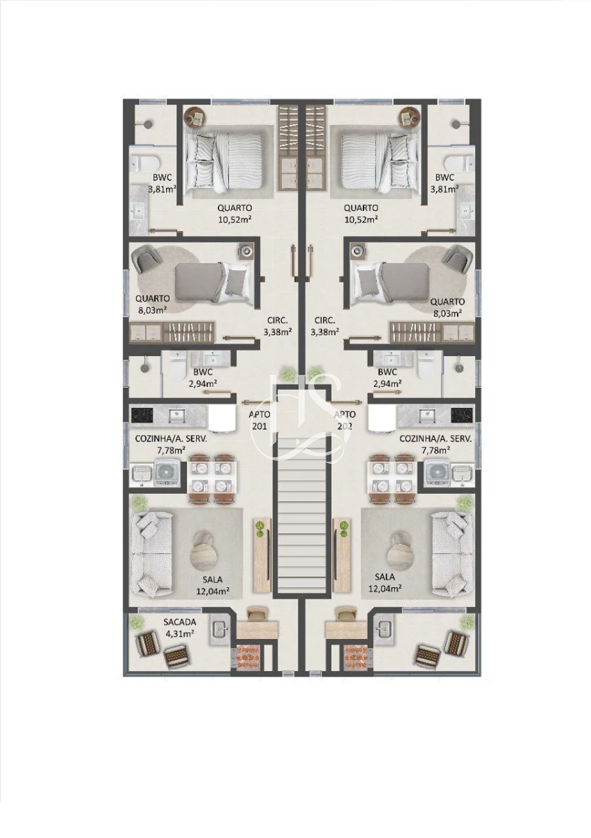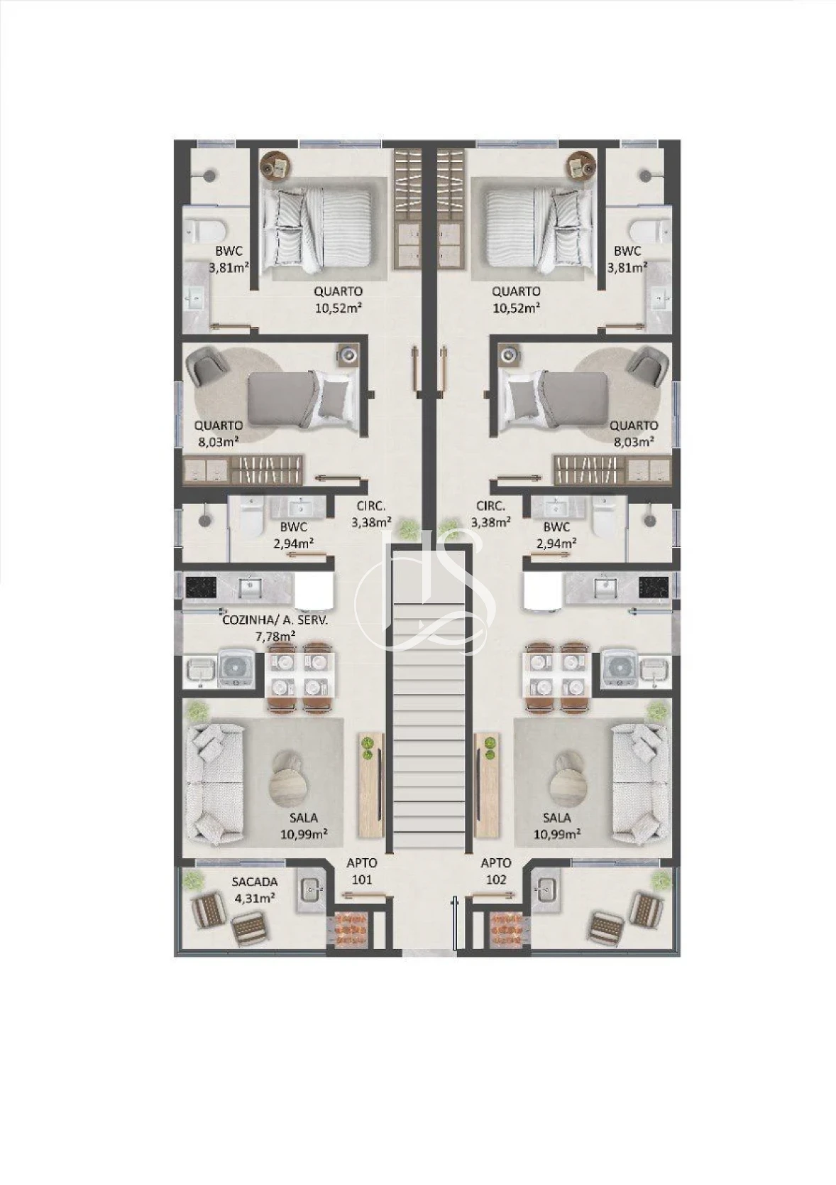 A planta é inteligente, garantindo praticidade no dia a dia e ambientes que conversam entre si, trazendo amplitude e aconchego.