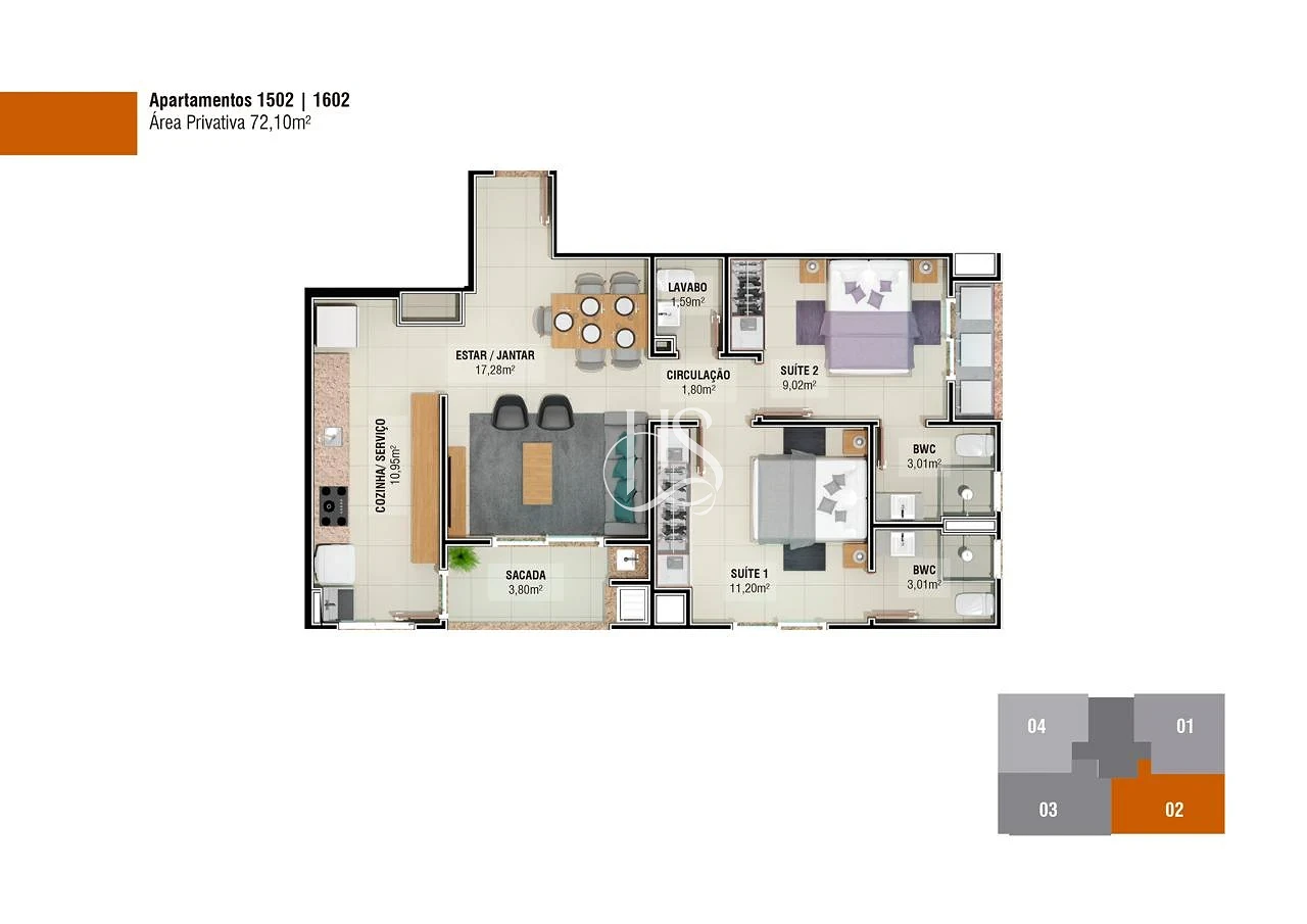 Com 72m² de área privativa muito bem distribuídos, cada metro quadrado foi pensado para proporcionar uma experiência de moradia superior: