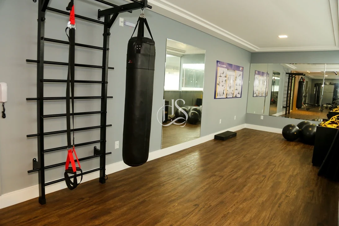 Cada detalhe foi pensado para o seu bem-estar: do impecável acabamento em porcelanato que reveste salas, quartos, cozinha e área de serviço, à deliciosa sacada com churrasqueira a carvão, palco de futuros encontros memoráveis. As persianas nos quartos garantem a privacidade que você merece, enquanto a completa infraestrutura com tubulação para split (quartos e sala), TV a cabo/internet, aquecimento a gás e hidrômetros individuais elevam o seu conforto a um novo patamar.