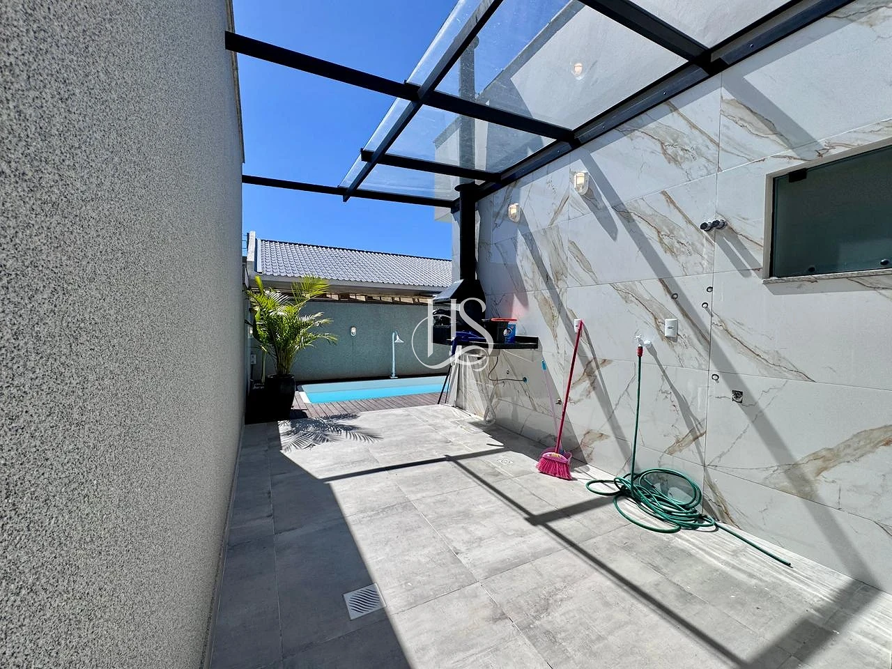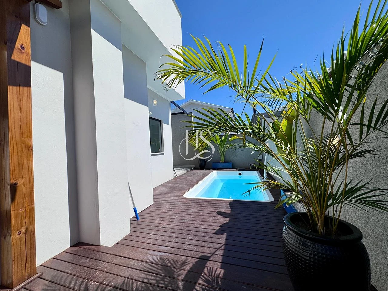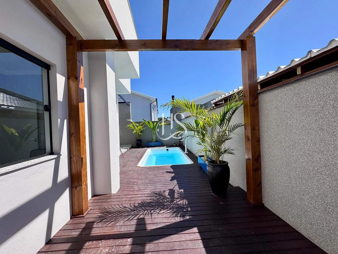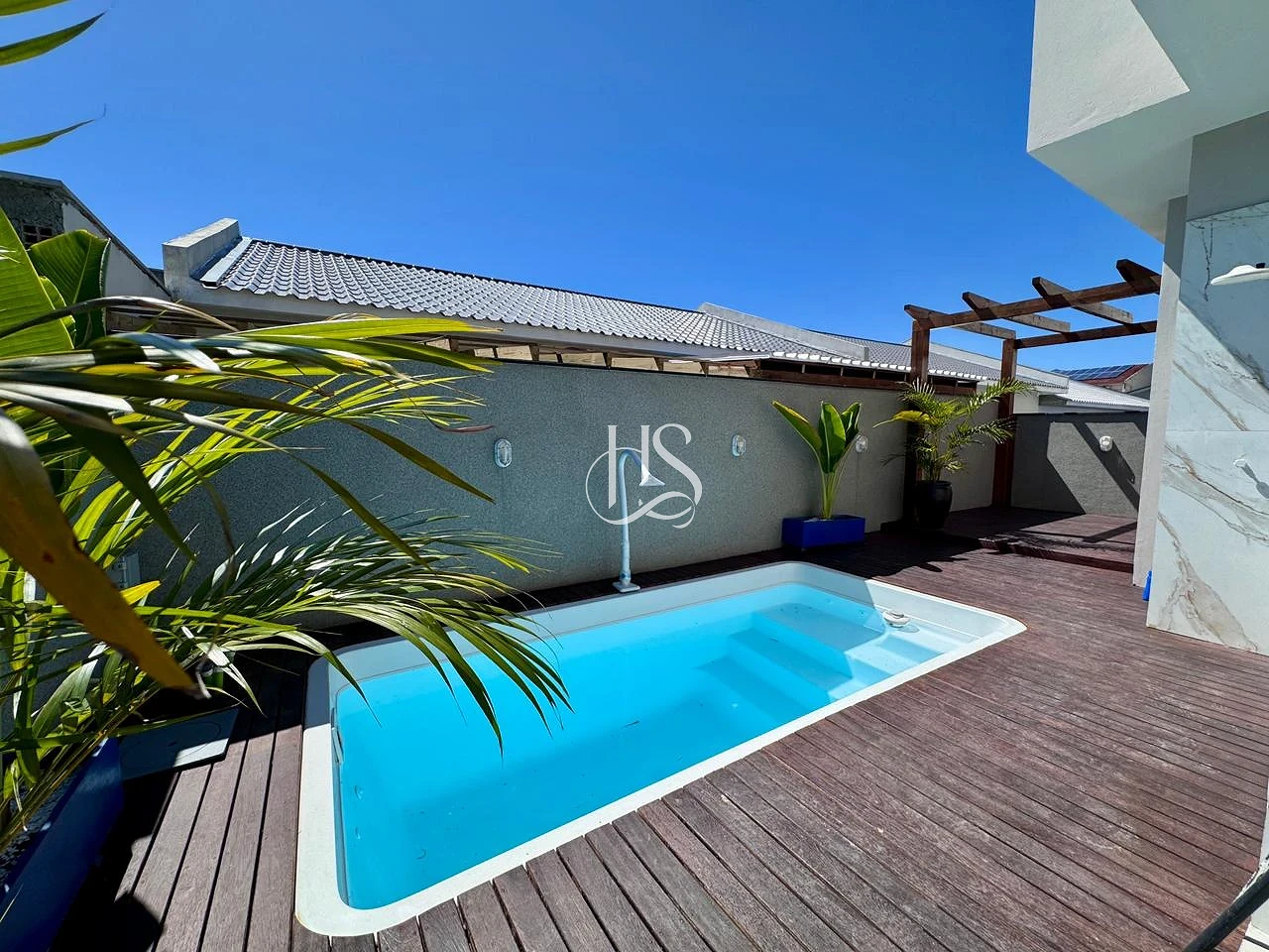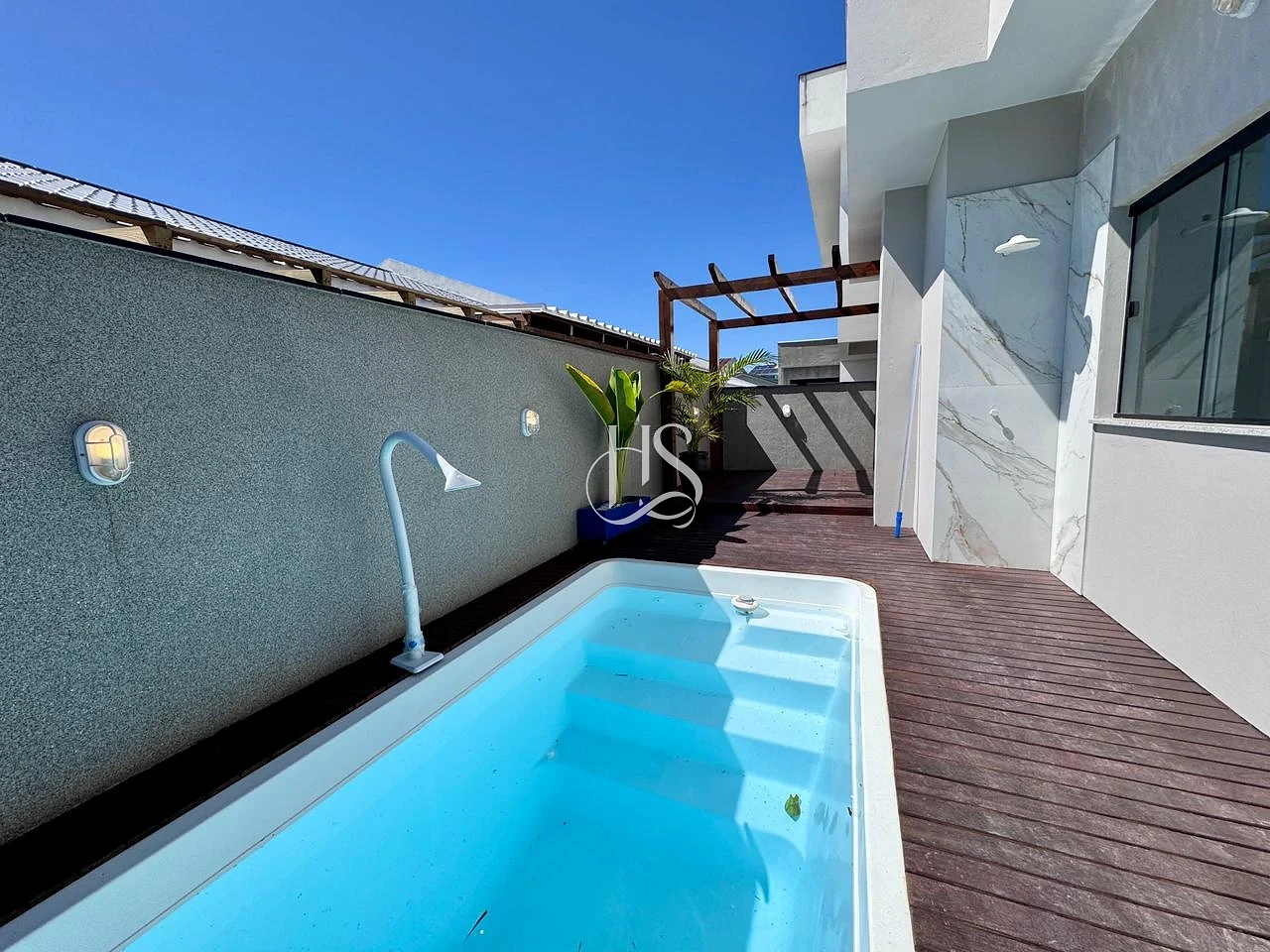 Lazer Privativo: Piscina refrescante com deck e pergolado , perfeita para momentos de descanso.