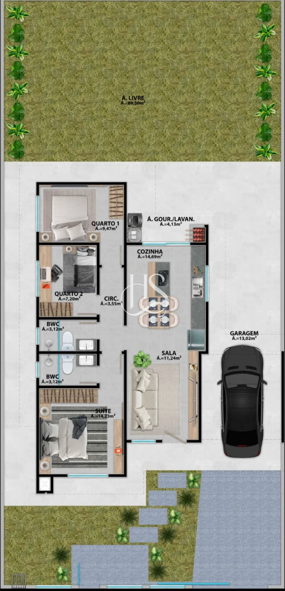 O imóvel conta com 3 dormitórios, sendo 1 suíte, sala e cozinha em conceito aberto, área de serviço coberta, garagem coberta, área gourmet e amplo espaço nos fundos, com espera para ofurô/piscina