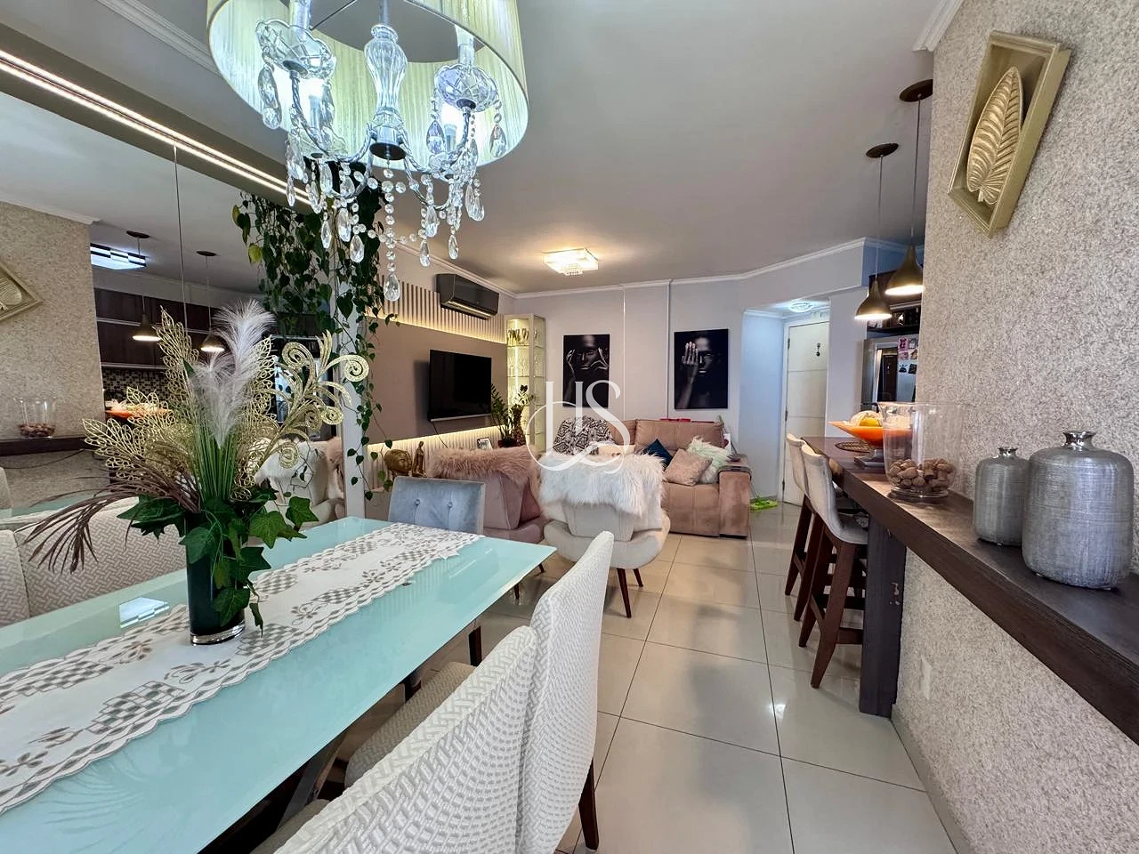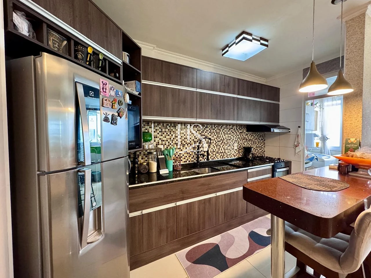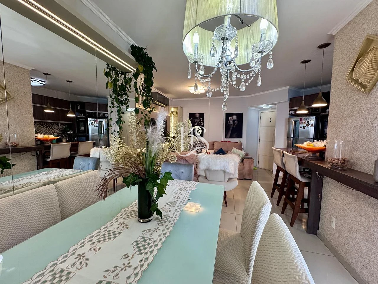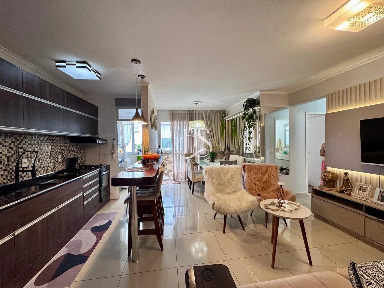 Ambientes Integrados: O coração do imóvel é o amplo living em conceito aberto, conectando sala e cozinha, para criar um ambiente fluido, iluminado e perfeito para a convivência familiar.