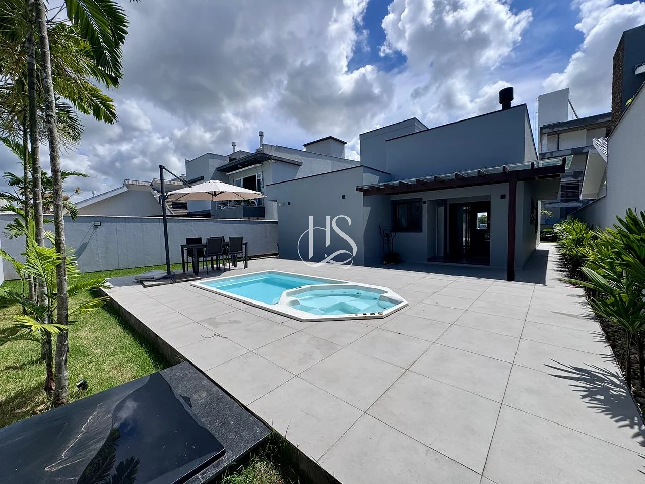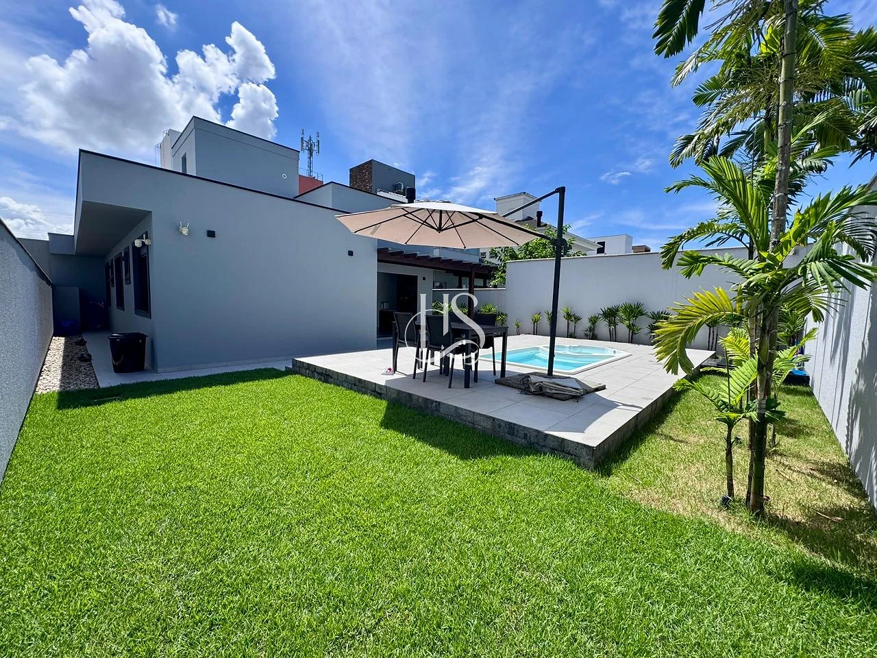 Com 360m² de terreno e 165m² de área construída, o projeto se destaca pelo design moderno e funcional: