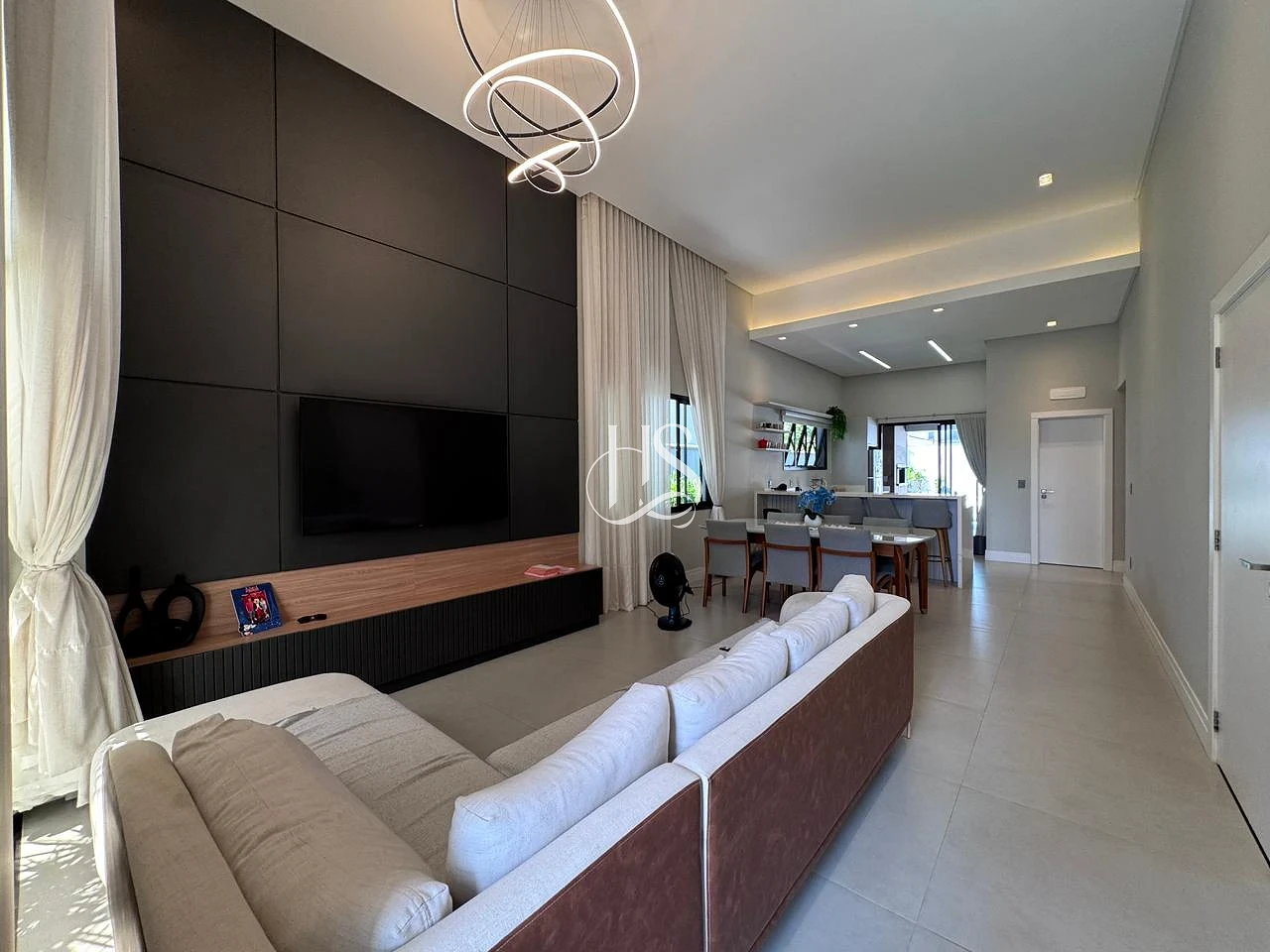 Ambientes Integrados: Sala de estar, sala de jantar e cozinha se unem em um open concept, perfeito para receber e conviver.