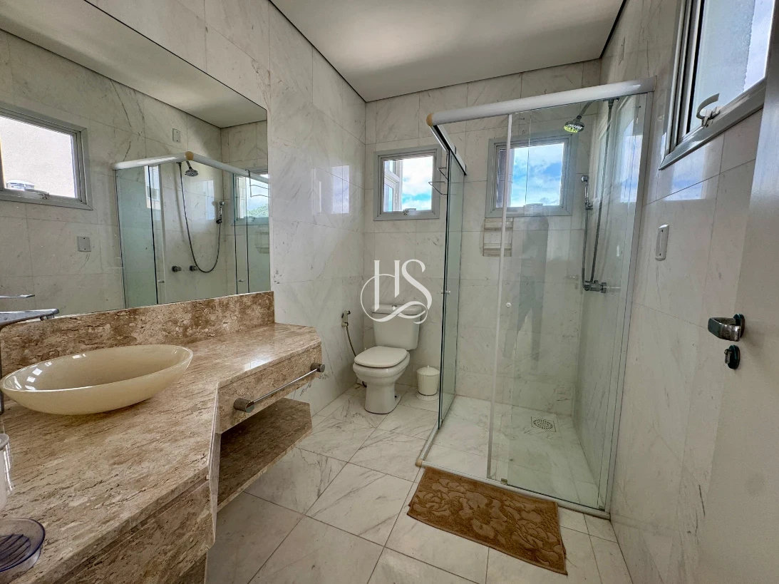 Acabamento Superior: Banheiro moderno com pia em granito e box elegante.