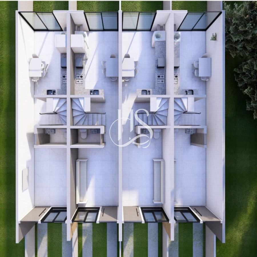 Espaço e Conforto: Com 80 m² de área privativa, cada sobrado foi cuidadosamente planejado para maximizar seu bem-estar. A área total de 114 m² por unidade garante amplitude e liberdade.